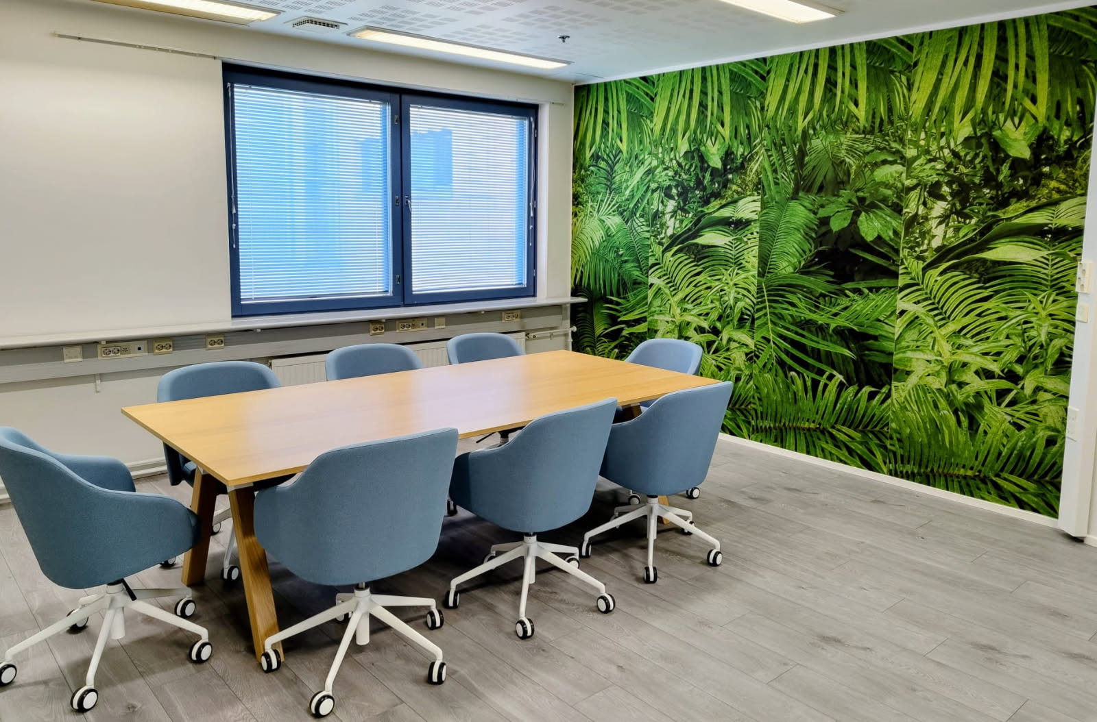 Videoneuvottelutila. Tilassa esitysnäyttö