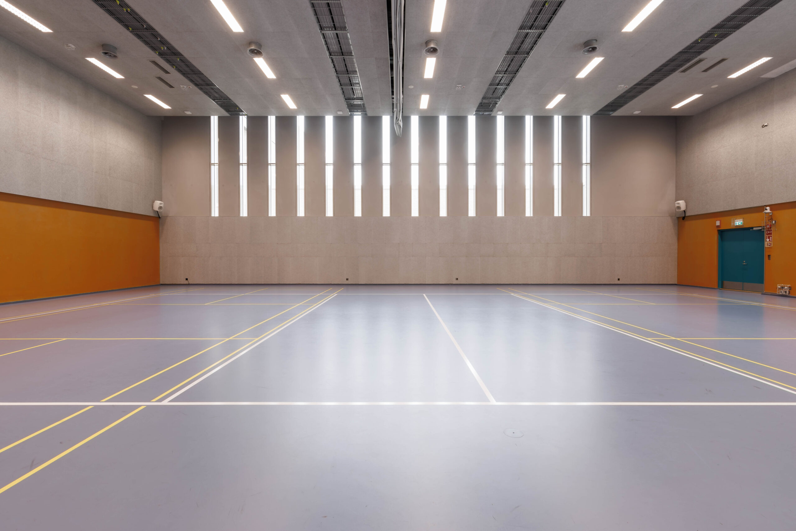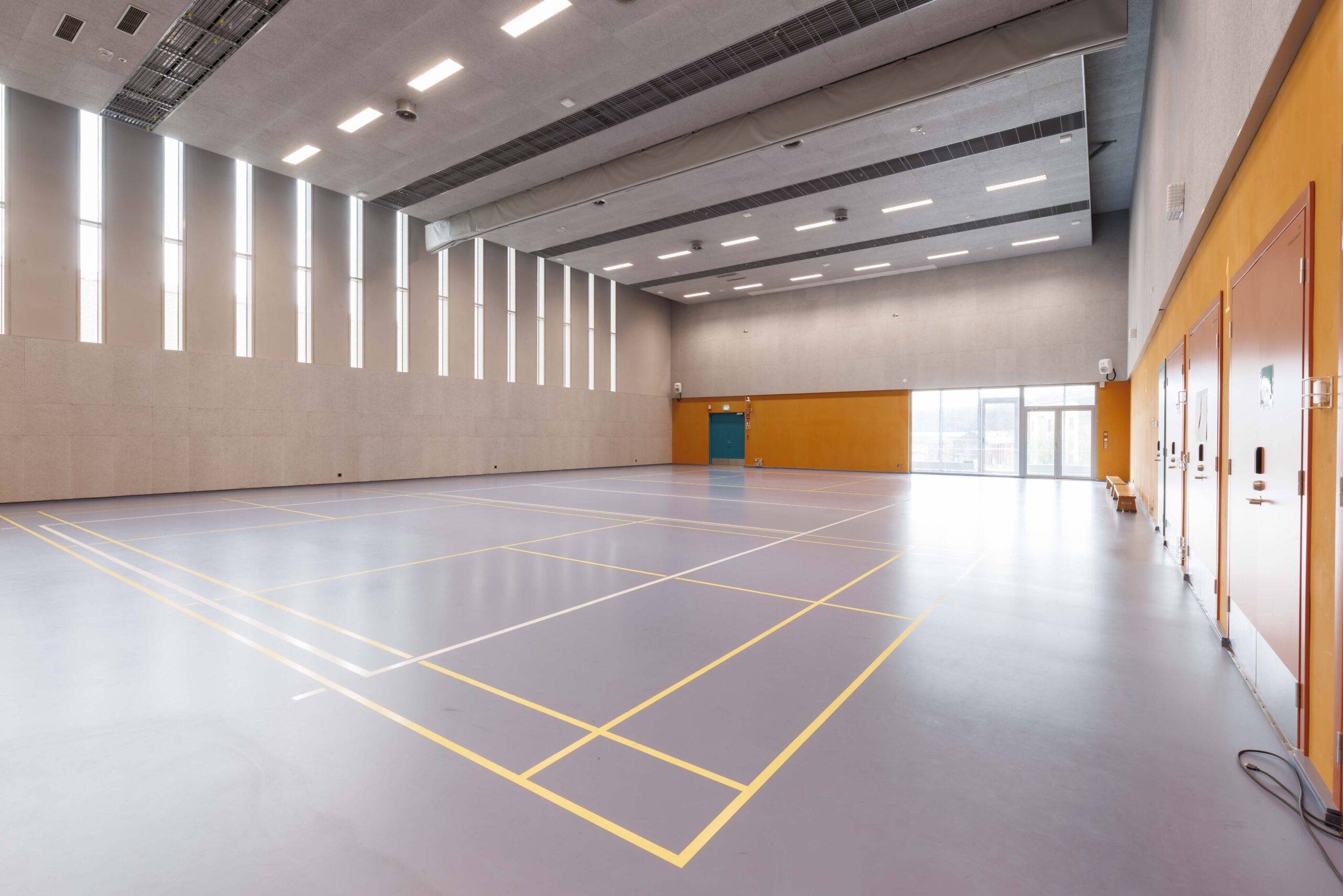 Tila soveltuu pallopelien pelaamiseen. Tilassa esitysnäyttö