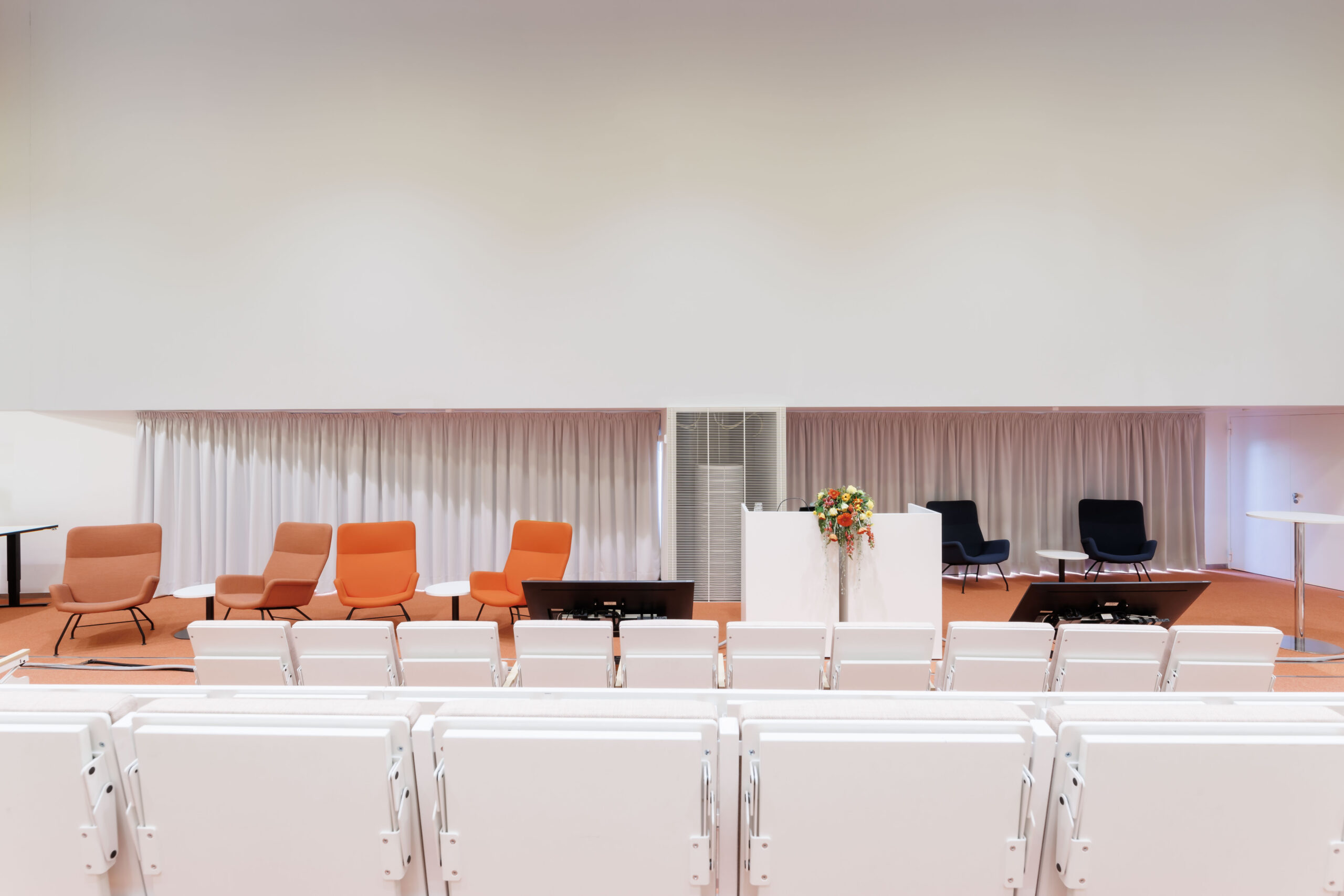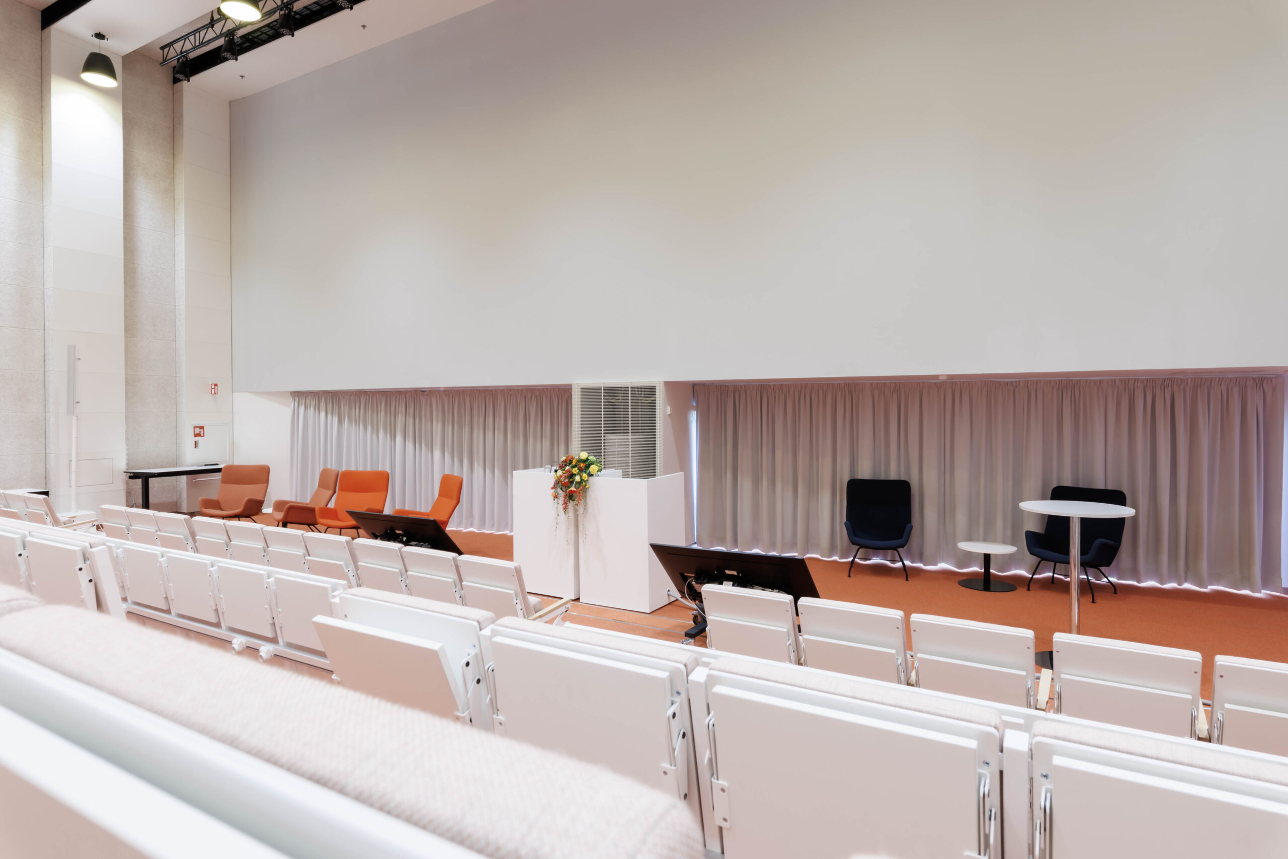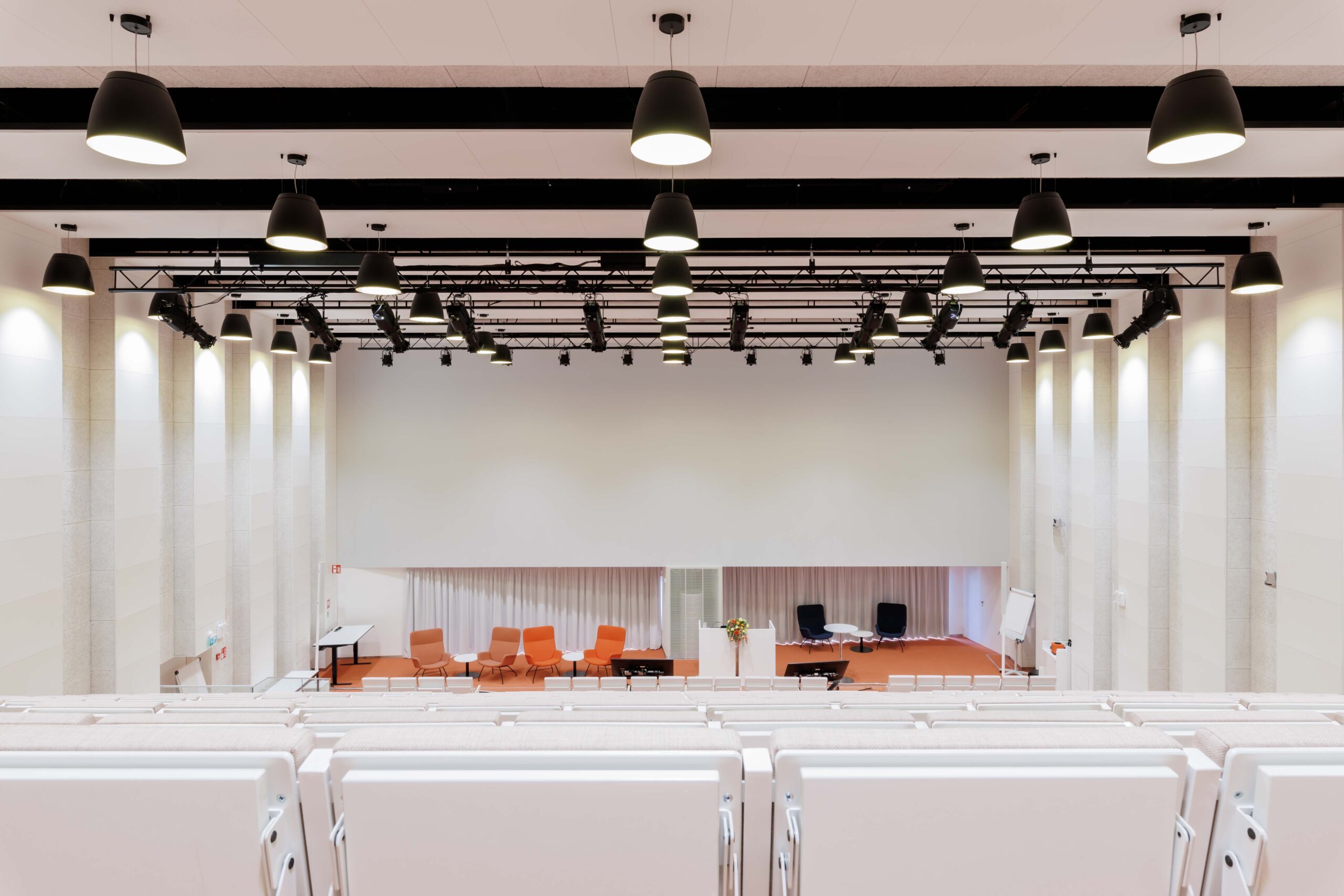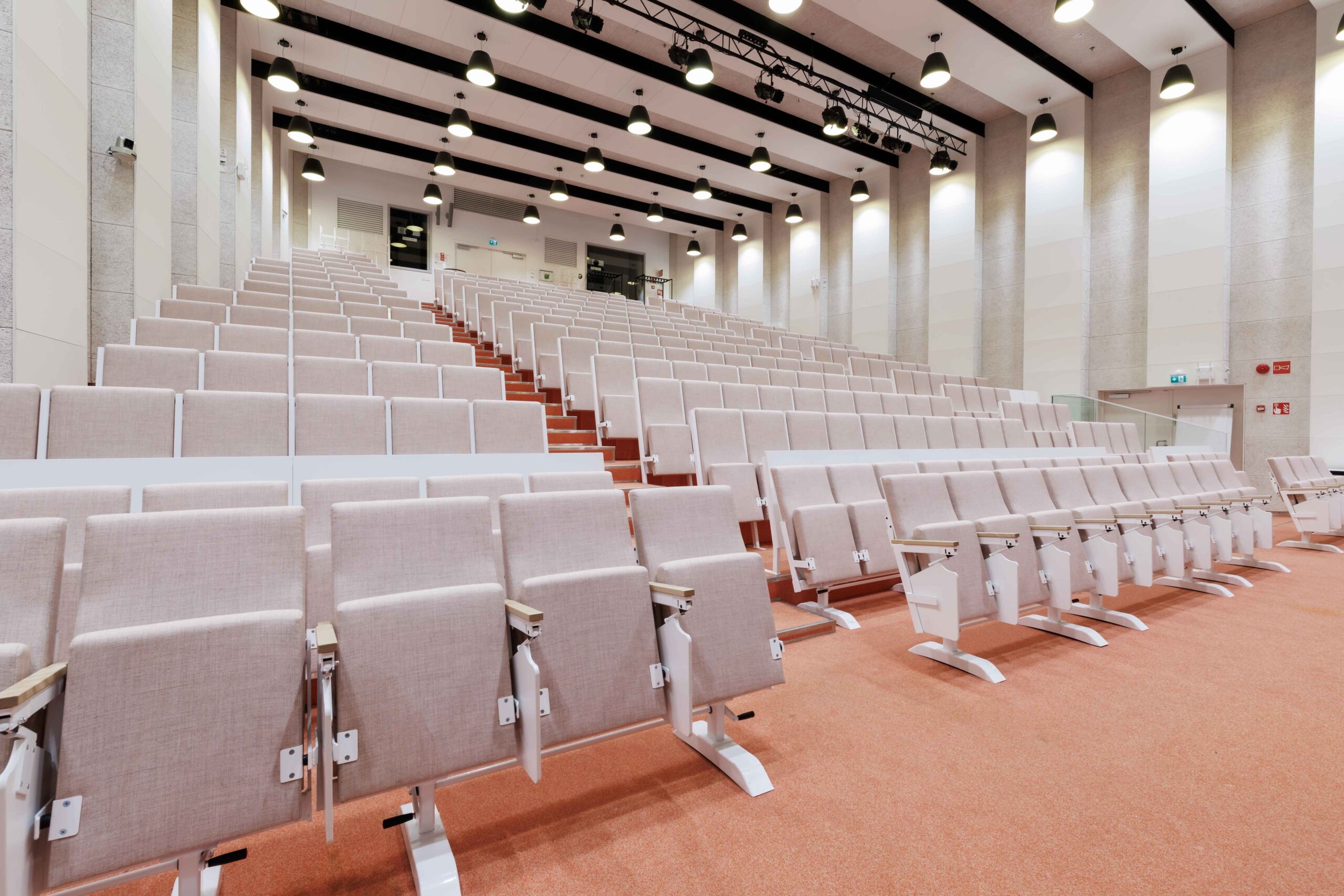 Moderni auditoriotila kahdella korkealaatuisella etäprojektorilla ja äänentoistolla. Tuolirivit on varustettu kirjoitustasoilla ja pistorasioilla. Auditorion ylätasolla on istumapaikkojen lisäksi 10 paikkaa.